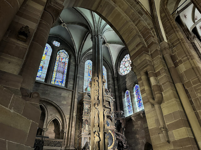Restored and rejuvenated from our lovely lunch in a picturesque French square, we made our way over to the Strasbourg Cathedral (aka Cathedral of Our Lady of Strasbourg). Since that was where we'd been instructed to meet back up with our group, we figured touring it last was the best way to maximize our time since we had far fewer hours available to wander than we'd anticipated. The line to get in was long but not prohibitively so. I think it felt longer than it actually was because there was no shade and it was around 90 degrees.